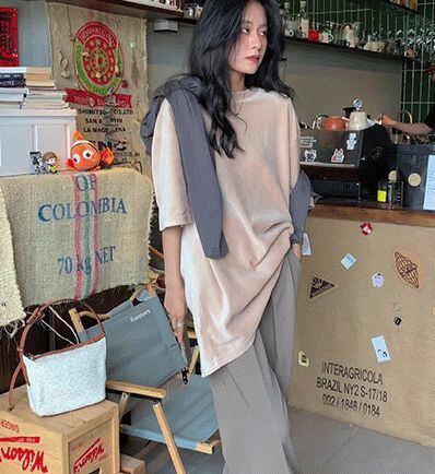 トップス Tシャツ ビッグT ロング丈 袖あり 30457 5分袖 ラウンドネック 襟付き ストレート ワイド 綿 シンプル カジュアル おしゃれ かっこいい こなれ感 ラフ メンズライク ボーイッシュ ルーズ 個性的 クール 抜け感 無地 秋 2021 10代 20代 レディース デート お出かけ 休日 運動 イベント 旅行 着回し 普段使い オルチャン ファッション モテ 体系カバー 新作 定番 トレンド サイズ S M L 色展開 ブラック グレー キャメル 送料無料