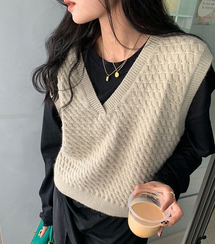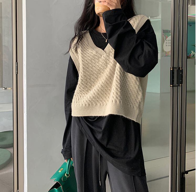 アウター ベスト ミディアム丈 袖なし 30467 Vネック 襟付き ストレート ニット 大人可愛い きれいめ シンプル おしゃれ レトロ 大人女子 こなれ感 ラフ キュート ガーリー ルーズ 無地 春 秋 2021 10代 20代 レディース 学生 デート お出かけ 女子会 休日 パーティー イベント 旅行 ホテル レストラン 着回し 普段使い 重ね着 オルチャン ファッション モテ 新作 定番 トレンド インスタ映え サイズ M L 色展開 オフホワイト ブラック 送料無料