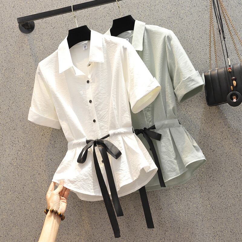 ウエストリボンブラウス トップス ブラウス 袖あり 30825 半袖 襟付き ペプラム ウエストマーク ウエストリボン 前開き かわいい 大人可愛い きれいめ シンプル カジュアル 大人 おしゃれ お洒落 レトロ 大人可愛い 大人女子 こなれ感 ラフ ラブリー キュート ガーリー 主役級 存在感 無地 春 夏 10代 20代 30代 レディース 学生 通学 デート お出かけ 女子会 休日 着回し 普段使い 重ね着 韓国 サイズ L XL 2XL 3XL 4XL 色展開 白 ホワイト 緑 グリーン 送料無料