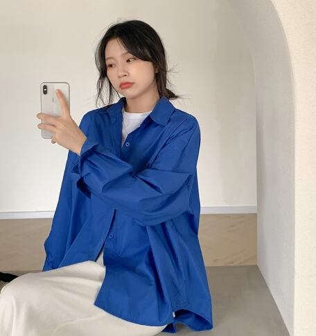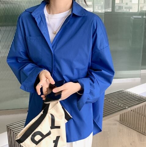 トップス シャツ ミディアム丈 袖あり 30491 長袖 襟付き POLO襟 ストレート 綿 シンプル カジュアル おしゃれ かっこいい 大人女子 こなれ感 ラフ メンズライク ボーイッシュ ルーズ モード系 抜け感 無地 春 秋 2021 10代 20代 レディース 学生 デート お出かけ 休日 旅行 着回し 普段使い 韓国系 ファッション 楽ちん 体系カバー 新作 トレンド インスタ映え フリーサイズ ゆる 色展開 ホワイト ブルー グリーン 送料無料