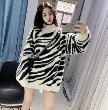 ゼブラ柄ニット トップス セーター 袖あり 20822 長袖 ハイネック もこもこ モコモコ ふわふわ かわいい 大人可愛い シンプル カジュアル 大人 おしゃれ お洒落 レトロ 大人可愛い 大人女子 こなれ感 ラフ ラブリー キュート ガーリー ルーズ 主役級 存在感 柄 セブラ柄 秋 冬 10代 20代 30代 レディース 学生 通学 デート お出かけ 女子会 休日 着回し 普段使い 重ね着 韓国 韓国系 サイズ S M L 色展開 黒 ブラック 送料無料