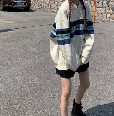 ボーダーポロニット トップス セーター 袖あり 20870 長袖 襟付き かわいい 大人可愛い シンプル カジュアル 大人 おしゃれ お洒落 レトロ 大人可愛い 大人女子 こなれ感 ラフ ラブリー キュート ガーリー ルーズ 個性的 主役級 存在感 無地 柄 ボーダー 春 秋 10代 20代 30代 レディース 学生 通学 デート お出かけ 女子会 休日 着回し 普段使い 韓国 韓国系 色展開 ベージュ 送料無料