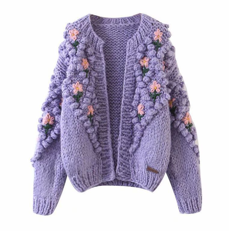 刺繡ニットカーディガン トップス カーディガン 20932 袖あり 長袖 ラウンドネック 刺繍 前開き かわいい 大人可愛い シンプル カジュアル 大人 おしゃれ お洒落 レトロ 大人可愛い 大人女子 こなれ感 ラフ ラブリー キュート ガーリー ルーズ 個性的 主役級 存在感 無地 フラワー ボーダー 秋 冬 10代 20代 30代 レディース 学生 通学 デート お出かけ 女子会 休日 着回し 普段使い 重ね着 韓国 韓国系 色展開 白 ホワイト 紫 パープル 送料無料