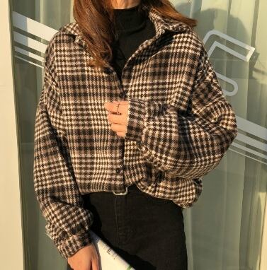 トップス アウター シャツ ミディアム丈 袖あり 30513 長袖 ボリューム袖 襟付き POLO襟 ストレート アシンメトリー 前開き ウール 厚手 大人可愛い シンプル カジュアル おしゃれ ラフ ボーイッシュ ルーズ 抜け感 チェック柄 秋 冬 2020 10代 20代 レディース 学生 デート お出かけ 休日 旅行 着回し 普段使い 重ね着 韓国系 ファッション 楽ちん 暖かい モテ 定番 トレンド インスタ映え フリーサイズ 色展開 ブラック ブルー 送料無料
