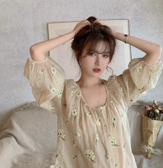 花柄刺繍ブラウス トップス ブラウス 袖あり 21135 長袖 ラウンドネック 刺繍 シフォン 前開き 透け感 かわいい 大人可愛い シンプル カジュアル 大人 おしゃれ お洒落 大人可愛い 大人女子 こなれ感 ラブリー キュート ガーリー ルーズ 個性的 主役級 存在感 とろみ感 柄 花柄 春 秋 10代 20代 30代 レディース 学生 通学 デート お出かけ 女子会 休日 着回し 普段使い 重ね着 サイズ S M L 色展開 アプリコット 送料無料