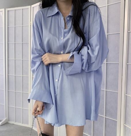 韓国ファッションで大人気、オーバーサイズのゆるシャツです。彼に借りたような大きいサイズ感と、袖のだぼっとしたシルエットがたまらなく可愛い1枚!デートコーデとしてもおすすめですよ。