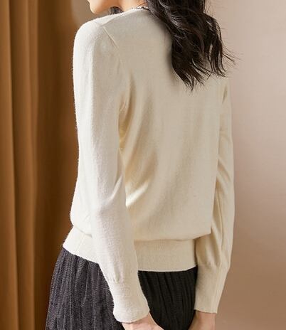 エレガントなスタイルにマッチする、Vネックカーディガンです。スリムなかたちで、アウターと重ねても着ぶくれせずすっきりとまとまります。普段使いも、パーティや会などにも着回し出来ますよ。