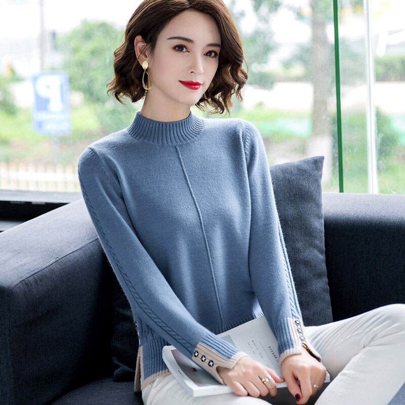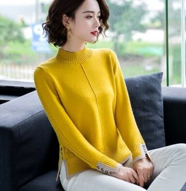 トップス セーター ミディアム丈 袖あり 7602 長袖 ラウンドネック 襟付き ストレート スリット リブニット ウール 大人可愛い きれいめ シンプル おしゃれ 大人女子 こなれ感 無地 秋 冬 2020 30代 40代 レディース デート お出かけ 女子会 休日 イベント ホテル レストラン 着回し 普段使い 韓国系 ファッション モテ インスタ映え サイズ S M L XL 2XL 3XL 色展開 ホワイト ブラック ブルー ローズピンク イエロー アプリコット 送料無料