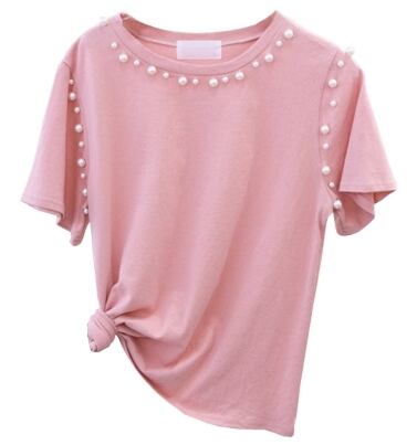 パールTシャツ トップス Tシャツ 袖あり 21355 半袖 ラウンドネック かわいい 大人可愛い シンプル カジュアル 大人 おしゃれ お洒落 レトロ 大人可愛い 大人女子 こなれ感 ラフ ラブリー キュート ガーリー 個性的 主役級 存在感 無地 春 夏 10代 20代 30代 レディース 学生 通学 デート お出かけ 女子会 休日 着回し 普段使い 重ね着 韓国 韓国系 トレンド 流行 サイズ S M L XL 色展開 ピンク 送料無料