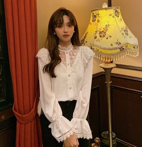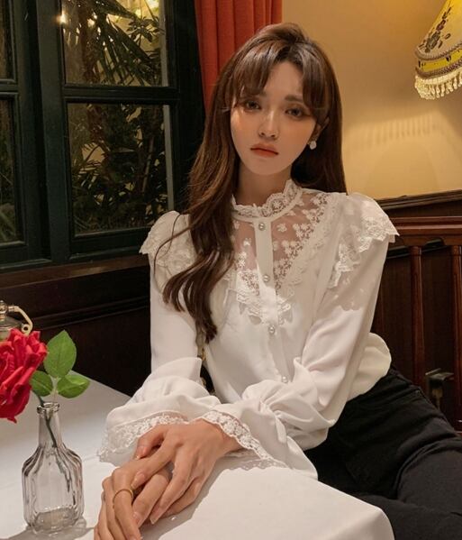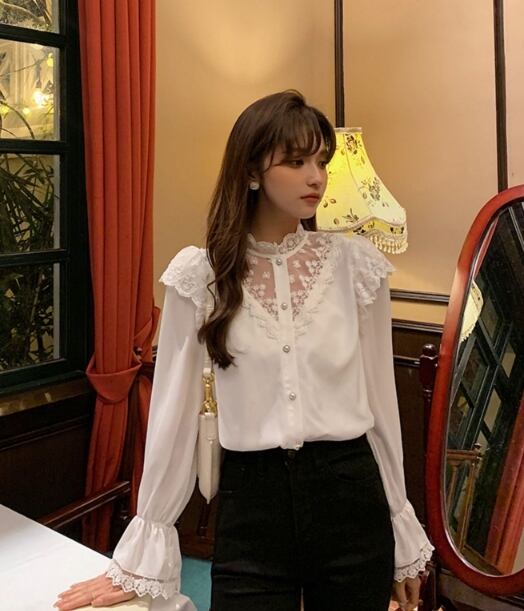 レースブラウス トップス ブラウス 袖あり 21490 長袖 ハイネック レース 前開き 透け感 シースルー ポリエステル かわいい 大人可愛い きれいめ シンプル カジュアル 大人 おしゃれ お洒落 レトロ 大人可愛い 大人女子 こなれ感 ラブリー キュート ガーリー 個性的 主役級 存在感 無地 春 秋 10代 20代 30代 レディース 学生 通学 デート お出かけ 女子会 休日 着回し 普段使い 重ね着 韓国 韓国系 トレンド 流行 サイズ S M L XL 色展開 白 ホワイト 送料無料