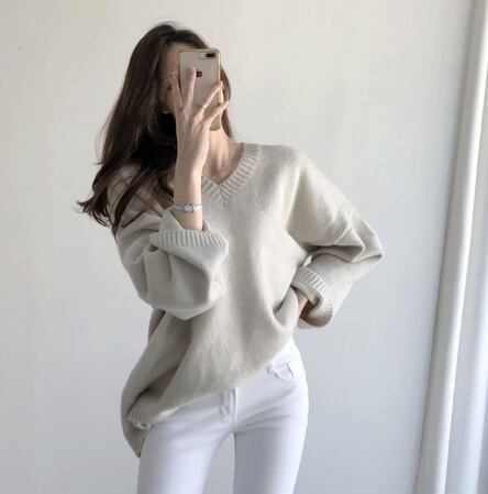 トップス セーター ミディアム丈 袖あり 7651 長袖 ボリューム袖 萌袖 Vネック 襟付き ワイド リブ アクリル 大人可愛い きれいめ シンプル おしゃれ 大人女子 こなれ感 ラフ ラブリー キュート ガーリー ルーズ とろみ感 無地 秋 冬 2021 10代 20代 レディース デート お出かけ 女子会 休日 イベント 旅行 着回し 普段使い 韓国系 ファッション 楽ちん モテ 体系カバー 新作 定番 トレンド インスタ映え フリーサイズ 色展開 ホワイト ブラック アプリコット 送料無料