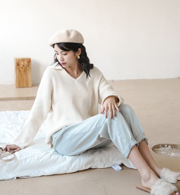 襟付きニット トップス セーター 袖あり 21742 長袖 Vネック 襟付き ポリエステル かわいい 大人可愛い シンプル カジュアル 大人 おしゃれ お洒落 レトロ 大人可愛い 大人女子 こなれ感 ラブリー キュート ガーリー ルーズ 個性的 主役級 存在感 無地 秋 冬 10代 20代 30代 レディース 学生 通学 デート お出かけ 女子会 休日 着回し 普段使い 重ね着 韓国 韓国系 色展開 青 ブルー 灰色 グレー アプリコット 送料無料