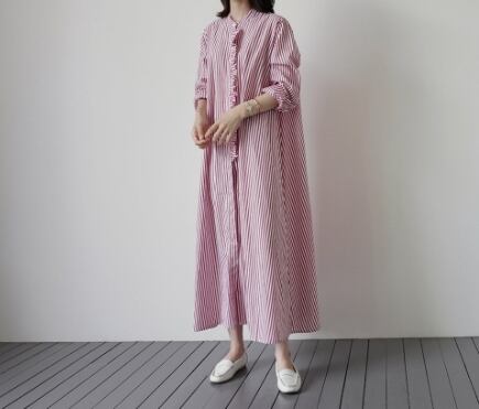 ストライプシャツワンピース ワンピース 22379 シャツワンピース ロング ロング丈 袖あり 長袖 スタンドカラー フリル 前開き かわいい 大人可愛い きれいめ シンプル カジュアル 大人 おしゃれ お洒落 レトロ 大人可愛い 大人女子 こなれ感 ラブリー キュート ガーリー 主役級 存在感 柄 ストライプ 春 秋 10代 20代 30代 レディース デート お出かけ 女子会 休日 着回し 普段使い 重ね着 韓国 韓国系 サイズ S M L XL 色展開 青 ブルー ピンク 送料無料