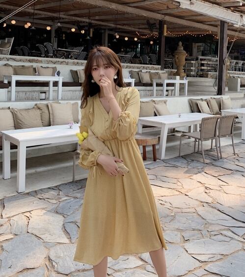 ドット柄シフォンワンピース ワンピース 22430 フレアワンピース ミモレ ミモレ丈 ロング ロング丈 袖あり 長袖 Vネック シフォン フリル 綿 かわいい 大人可愛い きれいめ シンプル カジュアル 大人 おしゃれ お洒落 レトロ 大人可愛い 大人女子 こなれ感 ラブリー キュート 主役級 存在感 柄 ドット柄 水玉 春 秋 10代 20代 30代 レディース デート お出かけ 女子会 休日 着回し 普段使い 重ね着 韓国 サイズ M L XL 色展開 黒 ブラック グリーン 黄色 送料無料