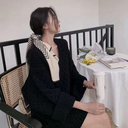 女性らしさをプラスしてくれます。首元はVネックで顔周りがスッキリ☆