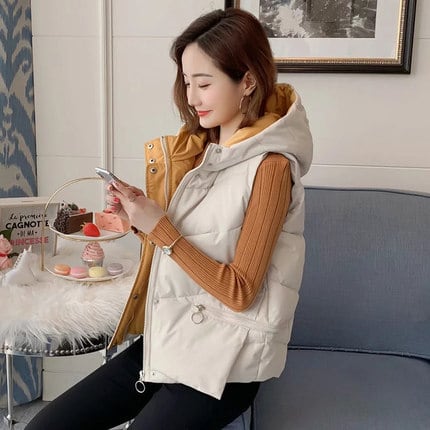 フード付きダウンベスト アウター ベスト 袖あり 23764 長袖 フード付き 前開き かわいい 大人可愛い きれいめ シンプル カジュアル 大人 おしゃれ お洒落 大人可愛い 大人女子 こなれ感 ラブリー キュート ガーリー 個性的 主役級 存在感 無地 秋 冬 10代 20代 30代 レディース 学生 通学 デート お出かけ 女子会 休日 着回し 普段使い 重ね着 韓国 韓国系 サイズ S M L XL 色展開 黒 ブラック ベージュ 送料無料
