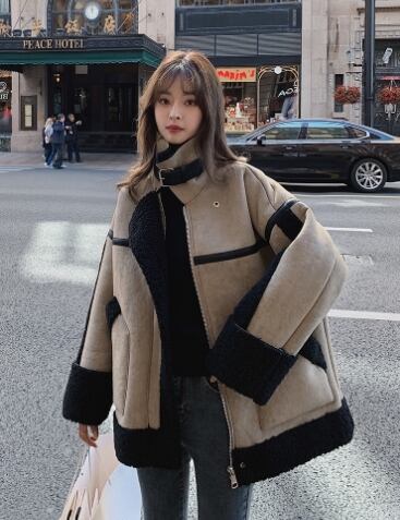 ボリューム感のあるボアとオーバーサイズが女性らしい印象に。