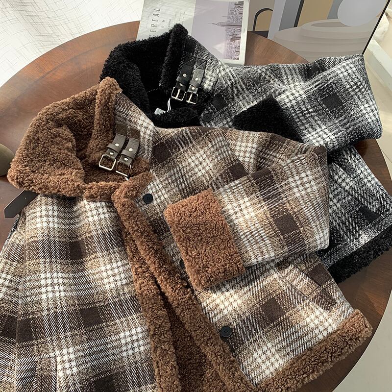 チェック柄が冬らしく温かみのあるボアアウター♪