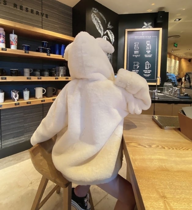 フロントを開けても閉めても、可愛くキマり、フードをかぶれば、まわりの視線も釘付けです!