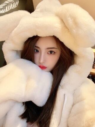 ボリュームたっぷりなうさ耳がついて、愛らしさバツグンのルックスを叶えるファージャケット♪