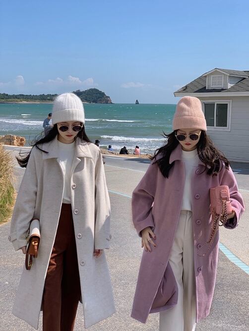 ロングコート アウター コート 袖あり 23863 長袖 襟付き 前開き ウール かわいい 大人可愛い シンプル カジュアル 大人 おしゃれ お洒落 レトロ 大人可愛い 大人女子 こなれ感 ラブリー キュート ガーリー 個性的 主役級 存在感 無地 秋 冬 10代 20代 30代 レディース 学生 通学 デート お出かけ 女子会 休日 着回し 普段使い 重ね着 韓国 韓国系 サイズ S M L 色展開 紫 パープル 送料無料