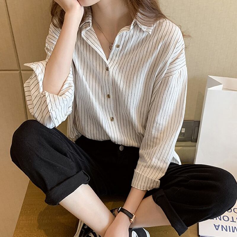 トップス シャツ ミディアム丈 袖あり 7461 長袖 襟付き POLO襟 ストレート 大人可愛い きれいめ シンプル カジュアル おしゃれ レトロ 大人女子 こなれ感 抜け感 柄 ストライプ 秋 冬 2020 10代 20代 レディース デート お出かけ 休日 旅行 着回し 普段使い モテ 新作 定番 トレンド インスタ映え サイズ S M L XL 色展開 ホワイト カーキ 秋カラー 送料無料