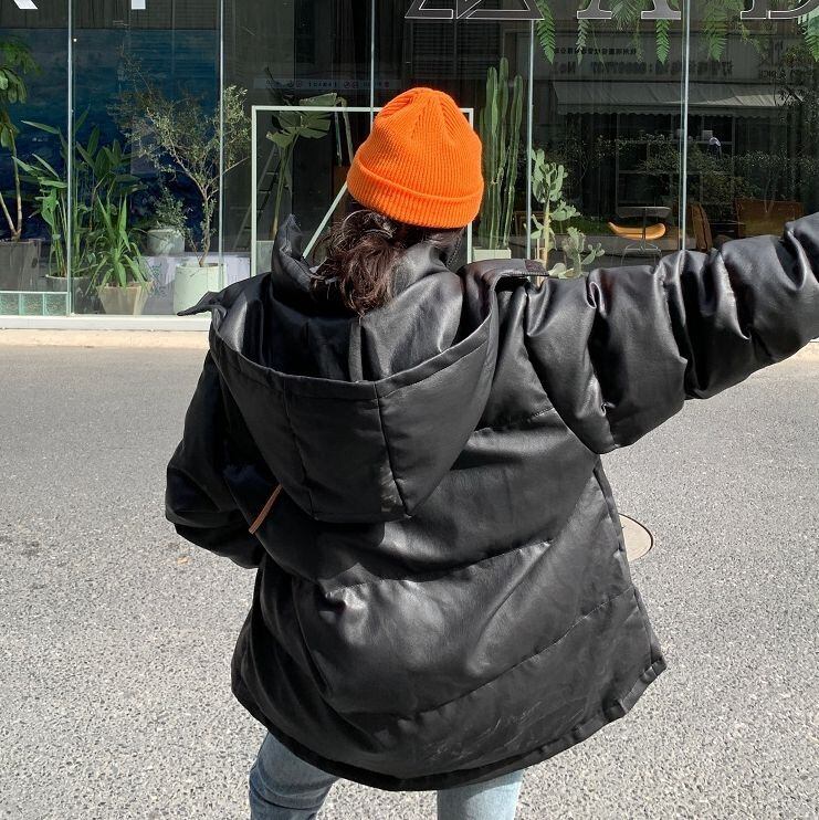 フェイクレザーダウン アウター ジャケット 23953 袖あり 長袖 もこもこ モコモコ フード付き 前開き PU かわいい 大人可愛い シンプル カジュアル 大人 おしゃれ お洒落 レトロ 大人可愛い 大人女子 こなれ感 ラブリー キュート ガーリー 個性的 主役級 存在感 無地 秋 冬 10代 20代 30代 レディース 学生 通学 デート お出かけ 女子会 休日 着回し 普段使い 重ね着 韓国 韓国系 サイズ S M L XL 2XL 3XL 4XL 色展開 黒 ブラック 送料無料