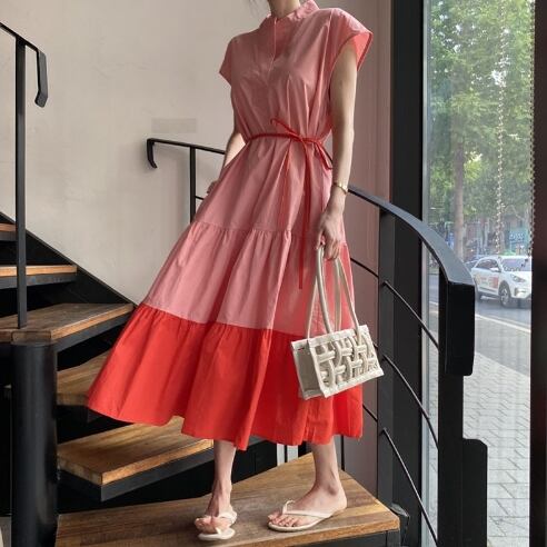 ワンピース アンクル丈 袖あり 半袖 襟付き 22232 スタンドカラー フレア フリル ハイウエスト 薄手 大人可愛い おしゃれ 大人女子 こなれ感 ラブリー キュート エレガント 存在感 無地 夏 2021 20代 30代 レディース デート お出かけ 女子会 休日 イベント リゾート 旅行 着回し 普段使い 韓国系 ファッション モテ 体系カバー 新作 インスタ映え フリーサイズ 色展開 カーキ ピンク 送料無料