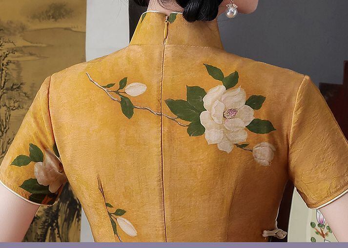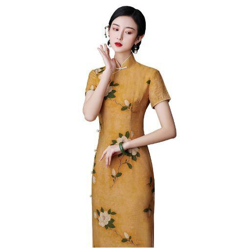 イベントやパーティに!華やかなイエローが映える、チャイナドレスです。体に沿ったスリムなラインが、女性らしいシルエットを演出します。顔回りもパッと明るく見えますよ。