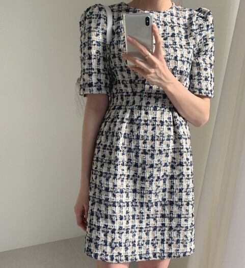 ワンピース ドレス 膝上 袖あり 半袖 22284 ラウンドネック 襟付き Aライン ハイウエスト かわいい 大人可愛い きれいめ 上品 おしゃれ レトロ 大人女子 ラブリー キュート エレガント 存在感 柄 ツイード 春 夏 2021 10代 20代 レディース デート お出かけ パーティー イベント ホテル レストラン 着回し 普段使い モテ 美脚 脚長 新作 インスタ映え フレンチスタイル サイズ S M 色展開 ブラック アプリコット 送料無料