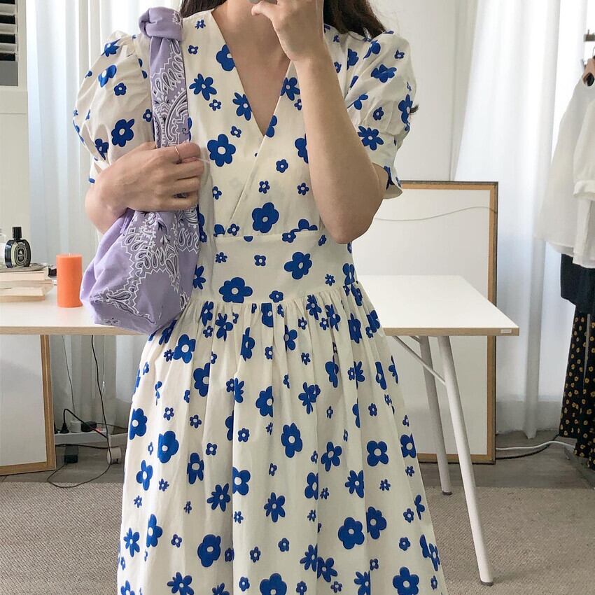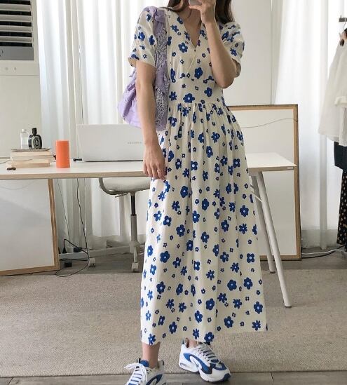 ワンピース アンクル丈 袖あり 半袖 Vネック 22286 襟付き Aライン ハイウエスト ポリエステル 薄手 大人可愛い シンプル カジュアル おしゃれ レトロ 大人女子 こなれ感 ラブリー キュート ガーリー 主役級 花柄 春 夏 2021 20代 30代 レディース デート お出かけ 女子会 休日 リゾート 旅行 着回し 普段使い オルチャン ファッション モテ 美脚 新作 トレンド インスタ映え サイズ XS S M 色展開 ホワイト イエロー 送料無料