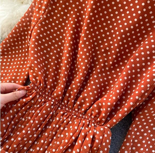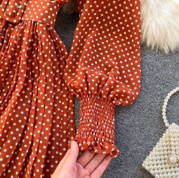ドレス ワンピドレス ロング丈 袖あり 22333 長袖 ボリューム袖 襟付き POLO襟 Aライン プリーツ シフォン ベルト ウエストマーク ハイウエスト 大人可愛い きれいめ おしゃれ レトロ 大人女子 キュート ガーリー 主役級 存在感 柄 水玉 春 秋 二次会 2021 10代 20代 レディース デート パーティー イベント ホテル レストラン 着回し 普段使い モテ 脚長 新作 インスタ映え フレンチスタイル 色展開 ホワイト ブラック パープル イエロー オレンジ レトロレッド送料無料