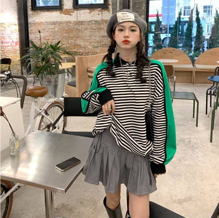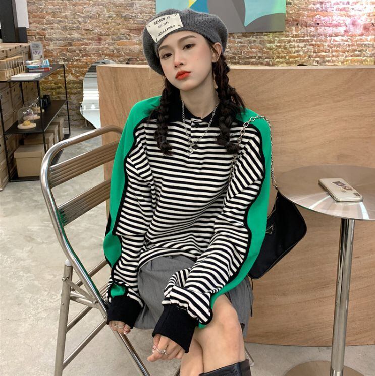 ボーダーTシャツ トップス Tシャツ シャツ 30552 袖あり 長袖 襟付き 綿 かわいい 大人可愛い シンプル カジュアル 大人 おしゃれ お洒落 レトロ 大人可愛い 大人女子 こなれ感 ラフ メンズライク ボーイッシュ スポーティー ルーズ 個性的 主役級 存在感 柄 ボーダー 春 秋 10代 20代 30代 レディース 学生 通学 デート お出かけ 女子会 休日 着回し 普段使い 重ね着 韓国 韓国系 色展開 黒 ブラック 茶色 ブラウン 送料無料