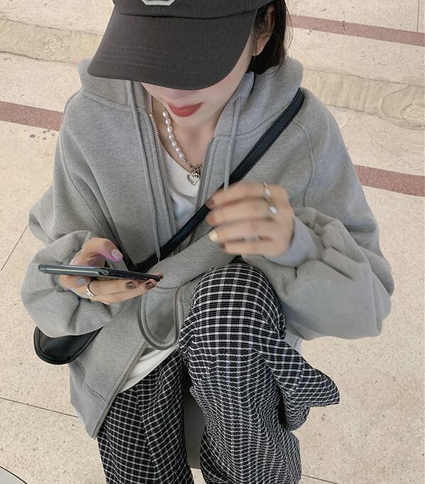 ジップアップパーカー トップス パーカー 30557 袖あり 長袖 フード付き ファスナー 前開き 綿 かわいい 大人可愛い きれいめ シンプル カジュアル 大人 おしゃれ お洒落 レトロ 大人可愛い 大人女子 こなれ感 ラフ メンズライク ボーイッシュ スポーティー ルーズ 個性的 主役級 存在感 無地 春 秋 10代 20代 30代 レディース 学生 通学 デート お出かけ 女子会 休日 着回し 普段使い 重ね着 韓国 韓国系 サイズ S M L XL 色展開 グレー 送料無料