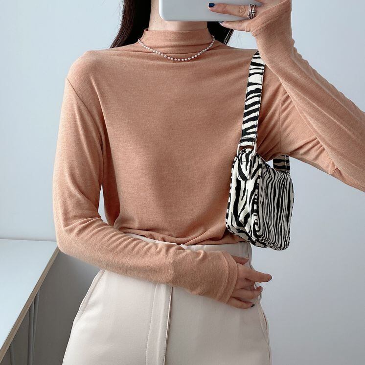 薄手のハイネックセーターです。肌にフィットして、着ていてとても気持ち良い一枚です。