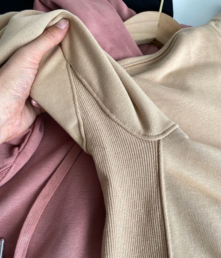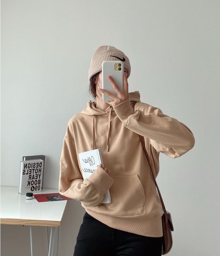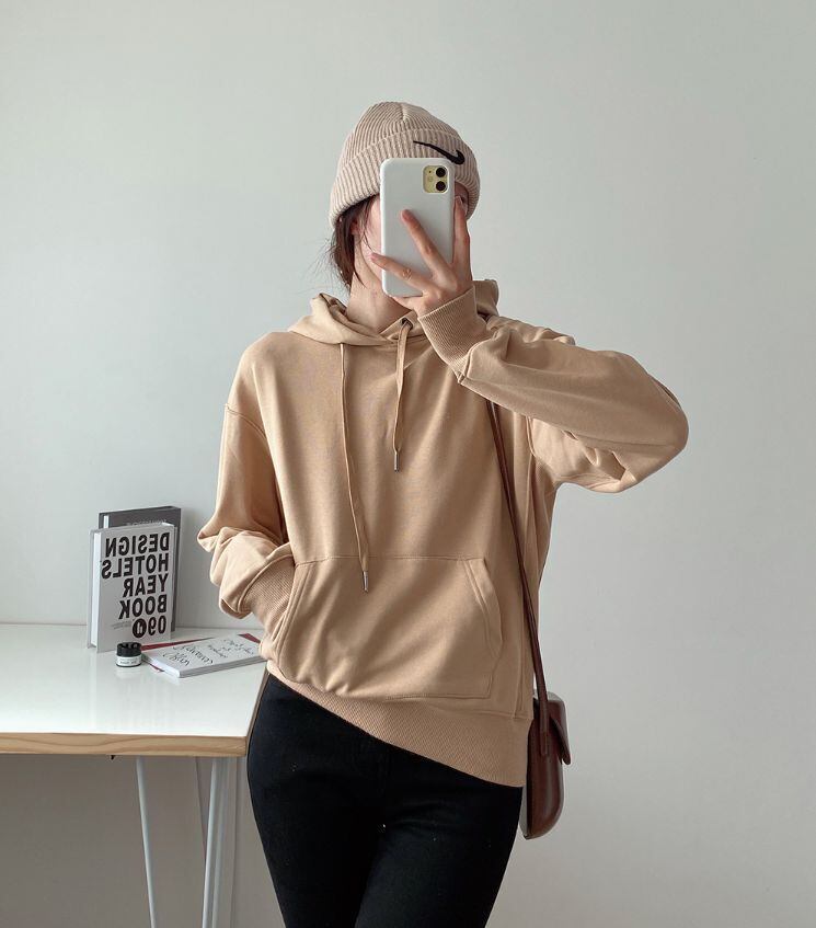 シンプルで何にでも合わせやすいフード付きパーカーです。