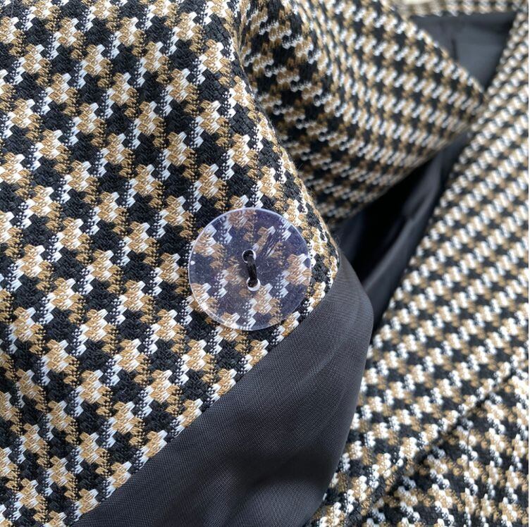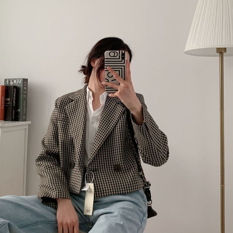 ショート丈ジャケット アウター 25029 ジャケット ショート丈 長袖 襟付き 綿混 大人可愛い カジュアル 千鳥格子 春 秋 レディース 学生 デート お出かけ 着回し 普段使い S M L 千鳥格子 送料無料