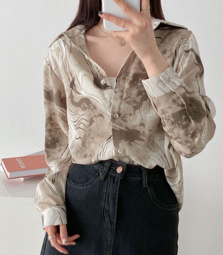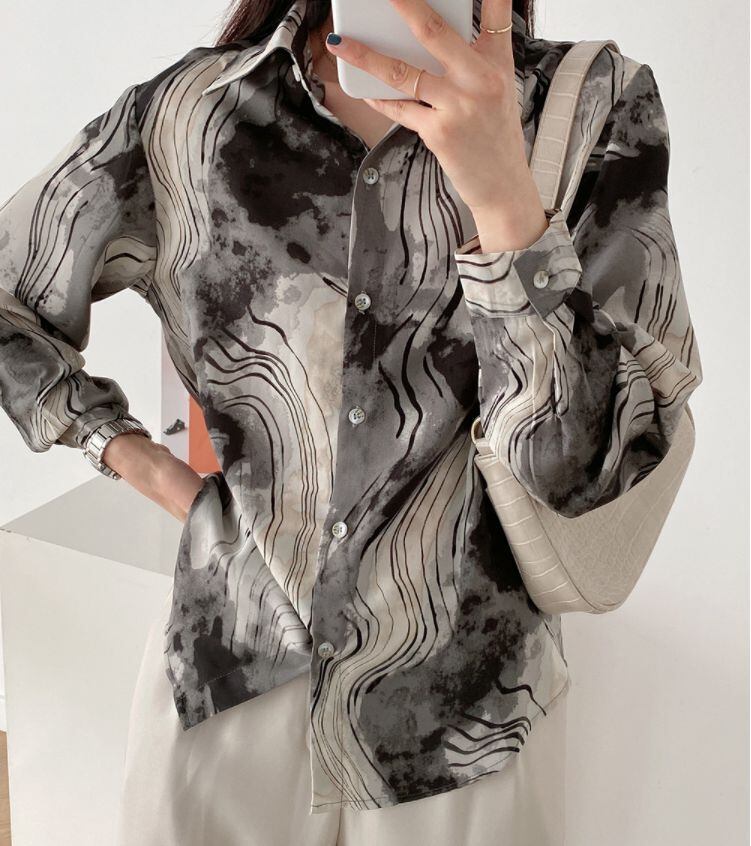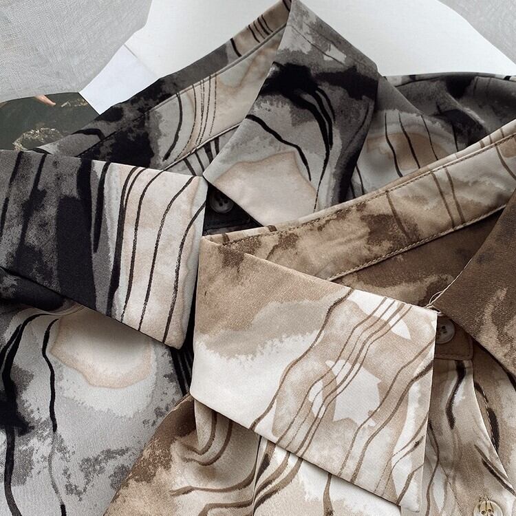 アウター シャツ ミディアム丈 袖あり 25013 長袖 襟付き POLO襟 ストレート シフォン 薄手 カジュアル 大人 おしゃれ かっこいい レトロ 大人女子 こなれ感 ラフ ルーズ クール 抜け感 パターン柄 春 夏 2021 20代 30代 レディース お出かけ 休日 イベント 旅行 着回し 普段使い 重ね着 韓国系 ファッション 楽ちん 体系カバー 新作 トレンド インスタ映え サイズ S M L 色展開 ブラック ブラウン 送料無料