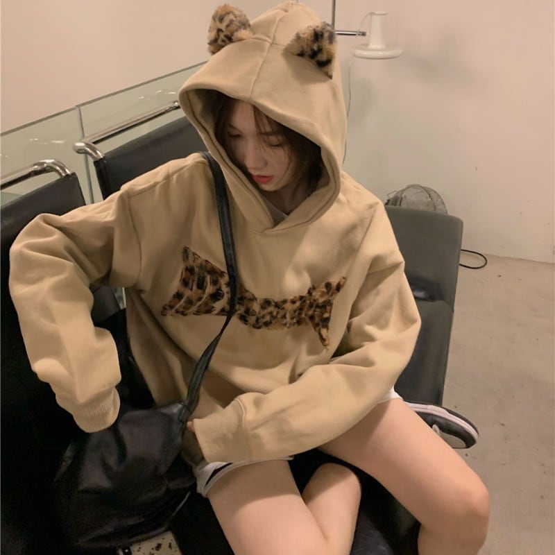 ロゴパーカー トップス パーカー トレーナー 30576 袖あり 長袖 フード付き 綿 かわいい 大人可愛い シンプル カジュアル 大人 おしゃれ お洒落 レトロ 大人可愛い 大人女子 こなれ感 ラフ メンズライク ボーイッシュ スポーティー ルーズ 個性的 主役級 存在感 無地 柄 ヒョウ柄 レオパード 秋 冬 10代 20代 30代 レディース 学生 通学 デート お出かけ 女子会 休日 着回し 普段使い 重ね着 韓国 韓国系 ゆったり ゆる 色展開 黒 ブラック カーキ 送料無料