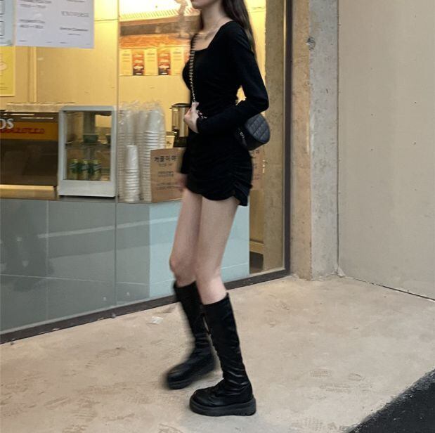 ギャザータイトミニワンピース ワンピース 30621 ワンピドレス ミニ ミニ丈 袖あり 長袖 スクエアネック スリム タイト 細身 綿 かわいい 大人可愛い きれいめ シンプル カジュアル 大人 おしゃれ お洒落 レトロ 大人可愛い 大人女子 こなれ感 ラブリー キュート ガーリー 主役級 存在感 無地 春 秋 10代 20代 30代 レディース デート お出かけ 女子会 休日 パーティー イベント 着回し 普段使い 重ね着 韓国 韓国系 色展開 黒 ブラック 送料無料