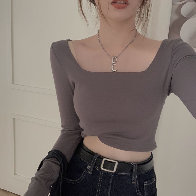 ショート丈ロンT Tシャツ カットソー 30648 ショート ショート丈 袖あり 長袖 スクエアネック スリム タイト かわいい 大人可愛い シンプル カジュアル 大人 おしゃれ お洒落 レトロ 大人可愛い 大人女子 こなれ感 ラフ メンズライク ボーイッシュ ラブリー キュート ガーリー 主役級 存在感 無地 春 秋 10代 20代 30代 レディース 学生 通学 デート お出かけ 女子会 休日 着回し 普段使い 重ね着 韓国 韓国系 色展開 白 ホワイト 黒 ブラック 灰色 グレー 送料無料
