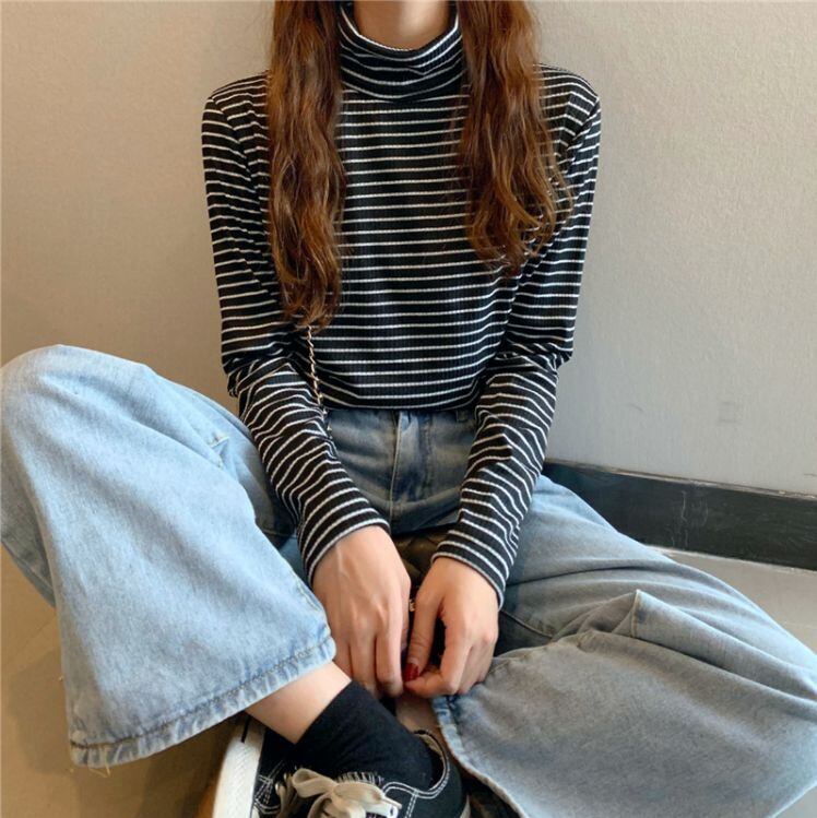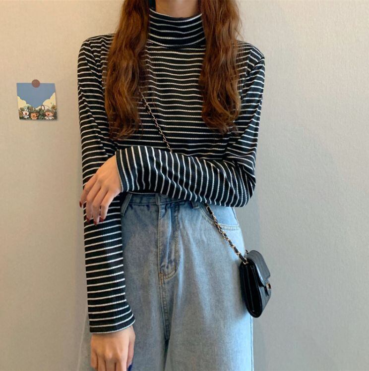 ボーダーハイネックカットソー カットソー 袖あり 30651 長袖 ハイネック かわいい 大人可愛い シンプル カジュアル 大人 おしゃれ お洒落 レトロ 大人可愛い 大人女子 こなれ感 ラフ メンズライク ボーイッシュ ラブリー キュート ガーリー 主役級 存在感 柄 ボーダー 春 秋 10代 20代 30代 レディース 学生 通学 デート お出かけ 公園デビュー 女子会 休日 着回し 普段使い 重ね着 韓国 韓国系 色展開 白 ホワイト 黒 ブラック 送料無料