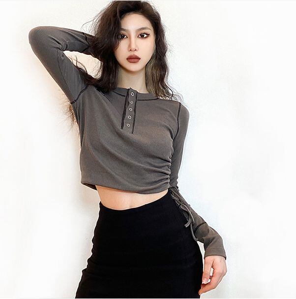 トップス Tシャツ ショート丈 袖あり 3078 長袖 ラウンドネック 襟付き スリム アシンメトリー ポリエステル 大人可愛い シンプル カジュアル 大人 おしゃれ かっこいい こなれ感 ラフ ルーズ クール 主役級 ストリート系 無地 春 秋 2020 10代 20代 レディース デート お出かけ 休日 パーティー イベント 旅行 着回し 普段使い 重ね着 暖かい モテ トレンド アメリカン サイズ S M L ブラック 送料無料