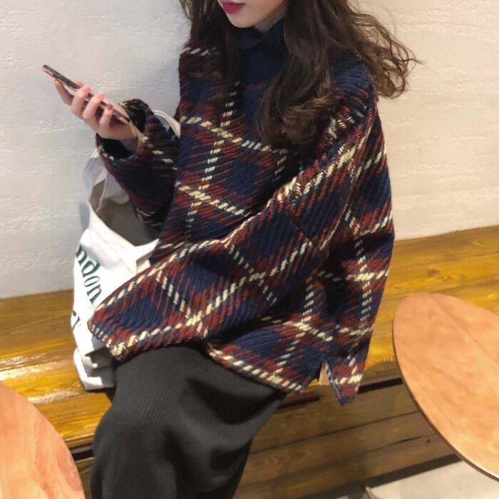秋冬のシーズンを盛り上げてくれる定番のチェック柄ニット♪