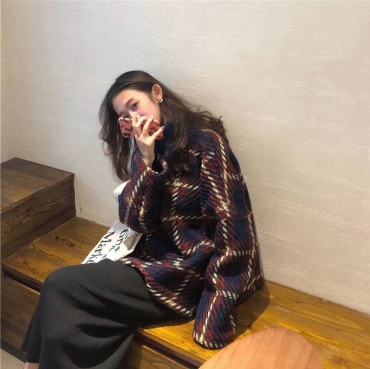 ハイネックチェック柄ニット トップス 30691 セーター 袖あり 長袖 ハイネック かわいい 大人可愛い きれいめ シンプル カジュアル 大人 おしゃれ お洒落 かっこいい エスニック エキゾチック 大人可愛い 大人女子 こなれ感 ラブリー キュート ガーリー 主役級 存在感 柄 チェック柄 秋 冬 10代 20代 30代 レディース 学生 通学 デート お出かけ 女子会 休日 着回し 普段使い 重ね着 韓国 韓国系 色展開 ネイビー 送料無料