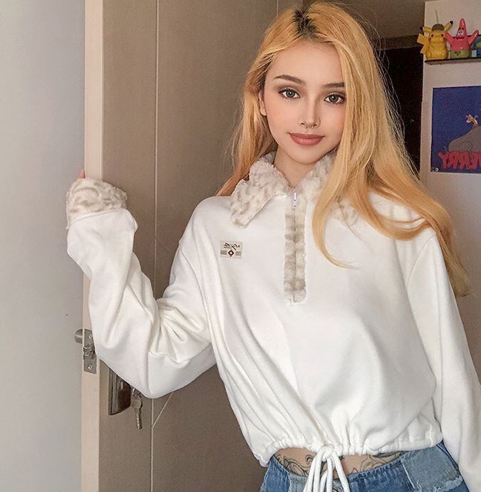 トップス セーター ショート丈 袖あり 3092 長袖 ファー袖 襟付き POLO襟 スリム ストレート ファスナー ポリエステル かわいい 大人可愛い きれいめ おしゃれ こなれ感 ラブリー キュート セクシー 存在感 抜け感 柄 レオパード 秋 冬 2020 10代 20代 レディース デート お出かけ 女子会 休日 パーティー イベント 着回し 普段使い 重ね着 モテ トレンド インスタ映え ヨーロピアン アメリカン サイズ S M L ホワイト 送料無料