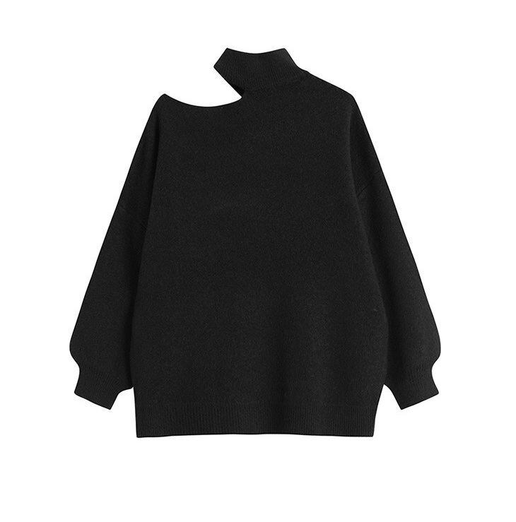 肩開きニット トップス セーター 袖あり 40006 長袖 ハイネック リブ かわいい 大人可愛い きれいめ シンプル カジュアル 大人 おしゃれ お洒落 かっこいい 大人可愛い 大人女子 こなれ感 ラブリー キュート ガーリー 主役級 存在感 無地 秋 冬 10代 20代 30代 レディース 学生 通学 デート お出かけ 女子会 休日 着回し 普段使い 重ね着 韓国 韓国系 色展開 白 ホワイト 黒 ブラック 灰色 グレー 送料無料