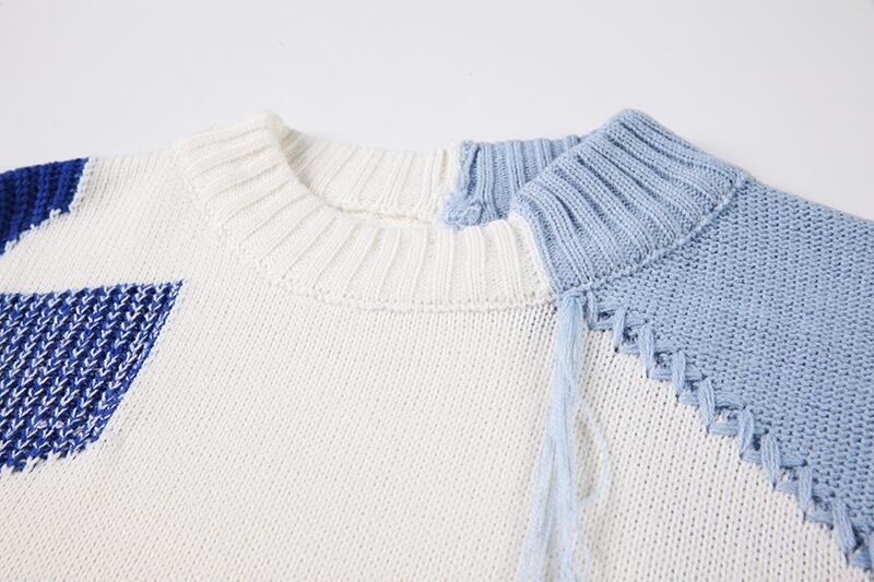 パッチワークニット トップス セーター 袖あり 40013 長袖 ラウンドネック かわいい 大人可愛い シンプル カジュアル 大人 おしゃれ お洒落 かっこいい 大人可愛い 大人女子 こなれ感 ラブリー キュート ガーリー ルーズ 個性的 主役級 存在感 無地 秋 冬 10代 20代 30代 レディース 学生 通学 デート お出かけ 女子会 休日 着回し 普段使い 重ね着 韓国 韓国系 色展開 白 ホワイト 送料無料