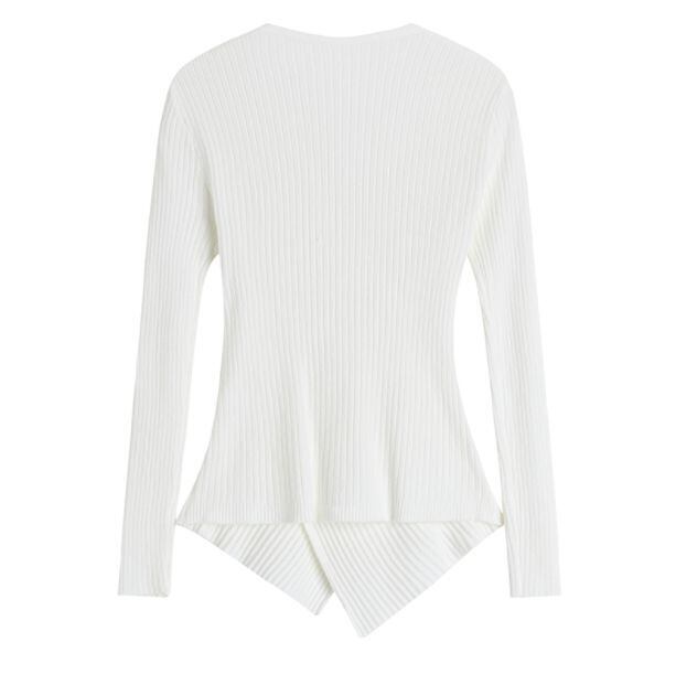 すっきりとした印象のトップスなのでフレアデザインやボリュームのあるボトムを合わせてもバランスよく着て頂けます。
