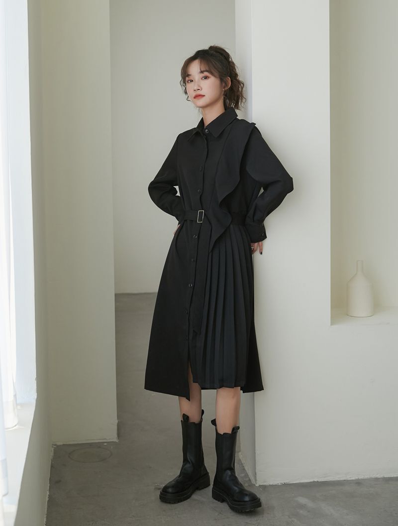 アシンメトリーデザインシャツワンピース 40031 ワンピース シャツワンピース 膝丈 ひざ丈 袖あり 長袖 襟付き マーメイド プリーツ ベルト ウエストマーク 前開き かわいい 大人可愛い きれいめ シンプル カジュアル 大人 おしゃれ お洒落 かっこいい 大人可愛い 大人女子 こなれ感 ラブリー キュート ガーリー ルーズ 個性的 主役級 存在感 無地 春 秋 10代 20代 30代 レディース 学生 通学 デート お出かけ 女子会 休日 着回し 普段使い 重ね着 サイズ S M ブラック 送料無料